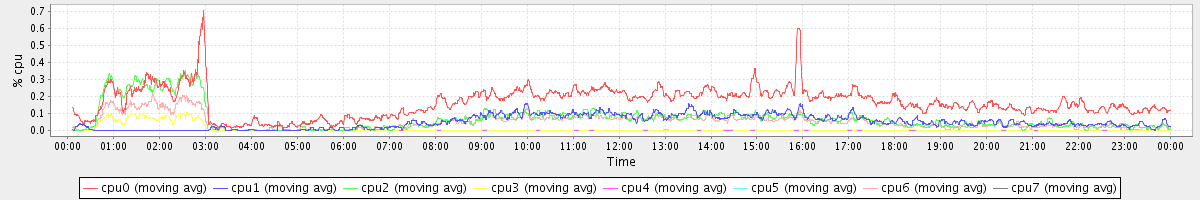 avg(cpu0) = 1.49 avg(cpu1) = 0.36 avg(cpu2) = 0.37 avg(cpu3) = 0.25 avg(cpu4) = 0.23 avg(cpu5) = 0.24 avg(cpu6) = 0.33 avg(cpu7) = 0.22
