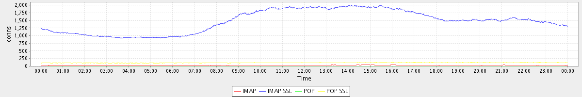 avg(IMAP) = 24.81 avg(IMAP SSL) = 1475.85 avg(POP) = 0.31 avg(POP SSL) = 110.41