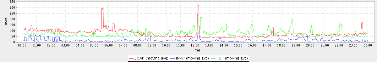 avg(IMAP) = 14.05 avg(IMAP SSL) = 1282.57 avg(POP) = 0.00 avg(POP SSL) = 176.44