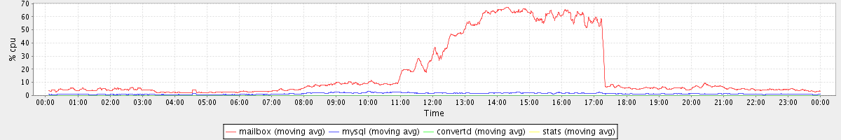 avg(mailbox) = 17.22 avg(mysql) = 1.36 avg(convertd) = 0.00 avg(stats) = 0.00