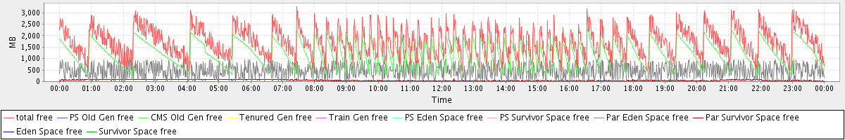 avg(total free) = 1731.46 avg(PS Old Gen free) = 0.00 avg(CMS Old Gen free) = 1205.42 avg(Tenured Gen free) = 0.00 avg(Train Gen free) = 0.00 avg(PS Eden Space free) = 0.00 avg(PS Survivor Space free) = 0.00 avg(Par Eden Space free) = 474.79 avg(Par Survivor Space free) = 51.26 avg(Eden Space free) = 0.00 avg(Survivor Space free) = 0.00