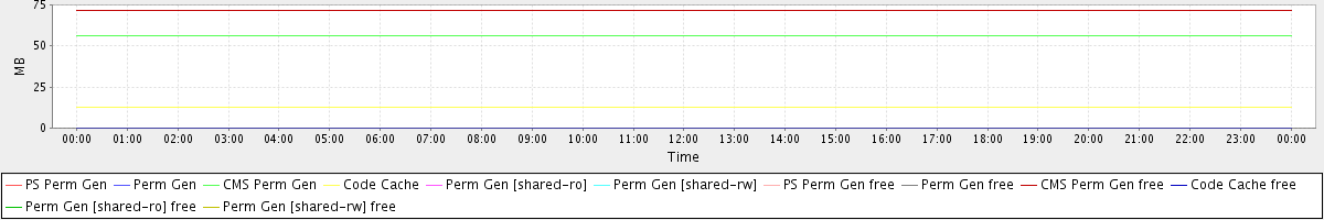 avg(PS Perm Gen) = 0.00 avg(Perm Gen) = 0.00 avg(CMS Perm Gen) = 56.37 avg(Code Cache) = 12.45 avg(Perm Gen [shared-ro]) = 0.00 avg(Perm Gen [shared-rw]) = 0.00 avg(PS Perm Gen free) = 0.00 avg(Perm Gen free) = 0.00 avg(CMS Perm Gen free) = 71.63 avg(Code Cache free) = 0.17 avg(Perm Gen [shared-ro] free) = 0.00 avg(Perm Gen [shared-rw] free) = 0.00