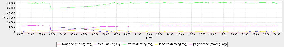 avg(swapped) = 0.23 avg(free) = 833.11 avg(active) = 29449.00 avg(inactive) = 1155.23 avg(page cache) = 5689.98