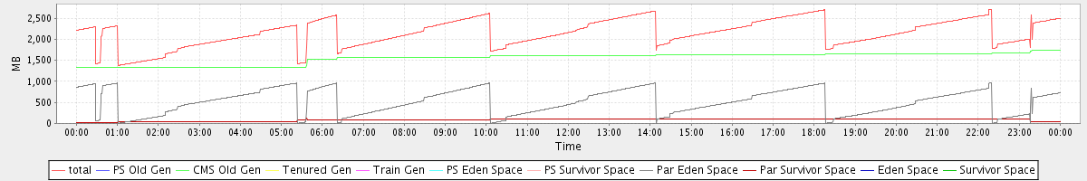 avg(total) = 2157.08 avg(PS Old Gen) = 0.00 avg(CMS Old Gen) = 1554.14 avg(Tenured Gen) = 0.00 avg(Train Gen) = 0.00 avg(PS Eden Space) = 0.00 avg(PS Survivor Space) = 0.00 avg(Par Eden Space) = 517.67 avg(Par Survivor Space) = 85.27 avg(Eden Space) = 0.00 avg(Survivor Space) = 0.00