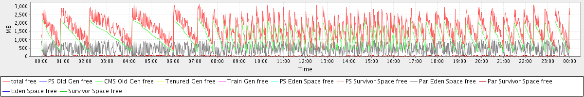 avg(total free) = 1712.10 avg(PS Old Gen free) = 0.00 avg(CMS Old Gen free) = 1212.65 avg(Tenured Gen free) = 0.00 avg(Train Gen free) = 0.00 avg(PS Eden Space free) = 0.00 avg(PS Survivor Space free) = 0.00 avg(Par Eden Space free) = 470.70 avg(Par Survivor Space free) = 28.75 avg(Eden Space free) = 0.00 avg(Survivor Space free) = 0.00