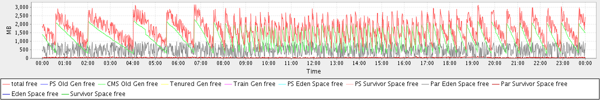 avg(total free) = 1696.60 avg(PS Old Gen free) = 0.00 avg(CMS Old Gen free) = 1179.19 avg(Tenured Gen free) = 0.00 avg(Train Gen free) = 0.00 avg(PS Eden Space free) = 0.00 avg(PS Survivor Space free) = 0.00 avg(Par Eden Space free) = 482.87 avg(Par Survivor Space free) = 34.53 avg(Eden Space free) = 0.00 avg(Survivor Space free) = 0.00
