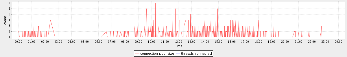 avg(connection pool size) = 0.74 avg(threads connected) = 0.00