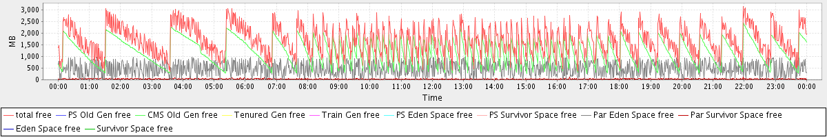 avg(total free) = 1699.26 avg(PS Old Gen free) = 0.00 avg(CMS Old Gen free) = 1189.38 avg(Tenured Gen free) = 0.00 avg(Train Gen free) = 0.00 avg(PS Eden Space free) = 0.00 avg(PS Survivor Space free) = 0.00 avg(Par Eden Space free) = 478.46 avg(Par Survivor Space free) = 31.42 avg(Eden Space free) = 0.00 avg(Survivor Space free) = 0.00