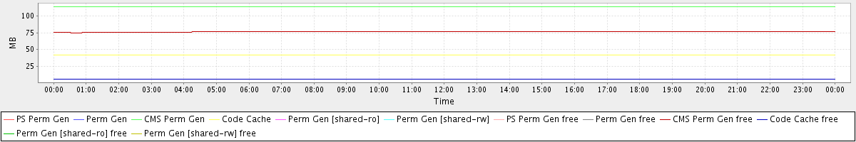 avg(PS Perm Gen) = 0.00 avg(Perm Gen) = 0.00 avg(CMS Perm Gen) = 114.25 avg(Code Cache) = 41.99 avg(Perm Gen [shared-ro]) = 0.00 avg(Perm Gen [shared-rw]) = 0.00 avg(PS Perm Gen free) = 0.00 avg(Perm Gen free) = 0.00 avg(CMS Perm Gen free) = 76.29 avg(Code Cache free) = 5.83 avg(Perm Gen [shared-ro] free) = 0.00 avg(Perm Gen [shared-rw] free) = 0.00