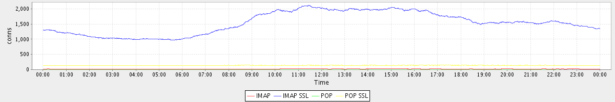 avg(IMAP) = 20.20 avg(IMAP SSL) = 1538.10 avg(POP) = 0.44 avg(POP SSL) = 136.85