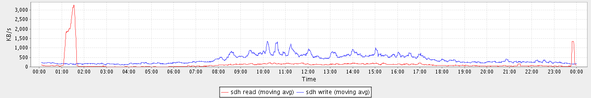 avg(sda2 read) = 0.87 avg(sda2 write) = 8.40