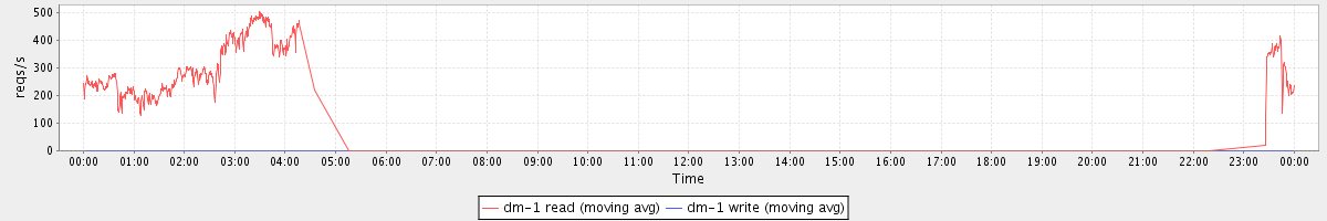 avg(dm-1 read) = 1279.76 avg(dm-1 write) = 0.35