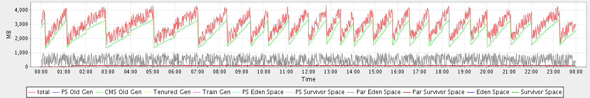 avg(total) = 2945.65 avg(PS Old Gen) = 0.00 avg(CMS Old Gen) = 2370.51 avg(Tenured Gen) = 0.00 avg(Train Gen) = 0.00 avg(PS Eden Space) = 0.00 avg(PS Survivor Space) = 0.00 avg(Par Eden Space) = 490.69 avg(Par Survivor Space) = 84.45 avg(Eden Space) = 0.00 avg(Survivor Space) = 0.00