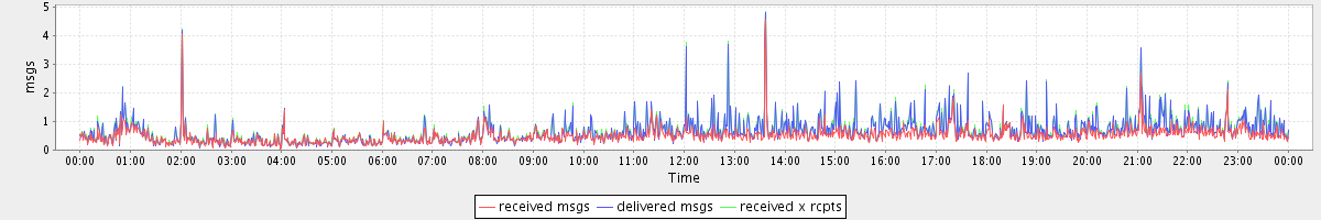 avg(received msgs) = 0.51 avg(delivered msgs) = 0.65 avg(received x rcpts) = 0.68