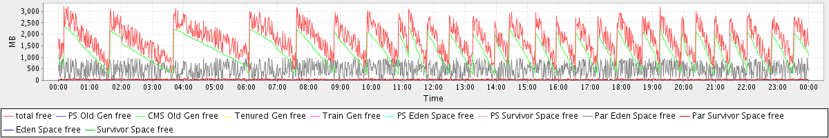 avg(total free) = 1790.52 avg(PS Old Gen free) = 0.00 avg(CMS Old Gen free) = 1272.66 avg(Tenured Gen free) = 0.00 avg(Train Gen free) = 0.00 avg(PS Eden Space free) = 0.00 avg(PS Survivor Space free) = 0.00 avg(Par Eden Space free) = 486.78 avg(Par Survivor Space free) = 31.08 avg(Eden Space free) = 0.00 avg(Survivor Space free) = 0.00