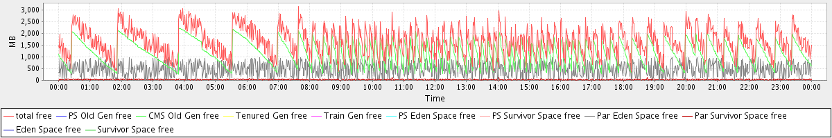 avg(total free) = 1656.88 avg(PS Old Gen free) = 0.00 avg(CMS Old Gen free) = 1151.00 avg(Tenured Gen free) = 0.00 avg(Train Gen free) = 0.00 avg(PS Eden Space free) = 0.00 avg(PS Survivor Space free) = 0.00 avg(Par Eden Space free) = 475.51 avg(Par Survivor Space free) = 30.37 avg(Eden Space free) = 0.00 avg(Survivor Space free) = 0.00