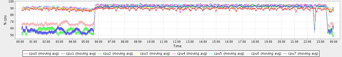 avg(cpu0) = 88.94 avg(cpu1) = 83.04 avg(cpu2) = 82.90 avg(cpu3) = 91.66 avg(cpu4) = 93.39 avg(cpu5) = 93.63 avg(cpu6) = 87.49 avg(cpu7) = 93.27