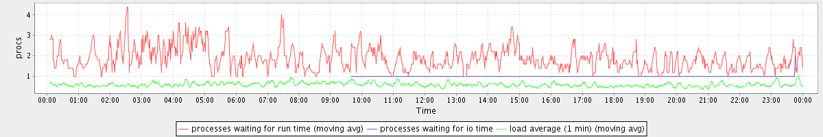 avg(processes waiting for run time) = 0.74 avg(processes waiting for io time) = 0.00 avg(load average (1 min)) = 0.59
