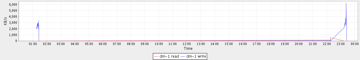 avg(dm-1 read) = 0.08 avg(dm-1 write) = 9.65