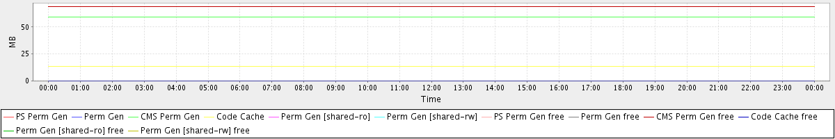 avg(PS Perm Gen) = 0.00 avg(Perm Gen) = 0.00 avg(CMS Perm Gen) = 59.02 avg(Code Cache) = 13.65 avg(Perm Gen [shared-ro]) = 0.00 avg(Perm Gen [shared-rw]) = 0.00 avg(PS Perm Gen free) = 0.00 avg(Perm Gen free) = 0.00 avg(CMS Perm Gen free) = 68.98 avg(Code Cache free) = 0.16 avg(Perm Gen [shared-ro] free) = 0.00 avg(Perm Gen [shared-rw] free) = 0.00