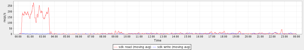 avg(sdk read) = 360.05 avg(sdk write) = 57.49