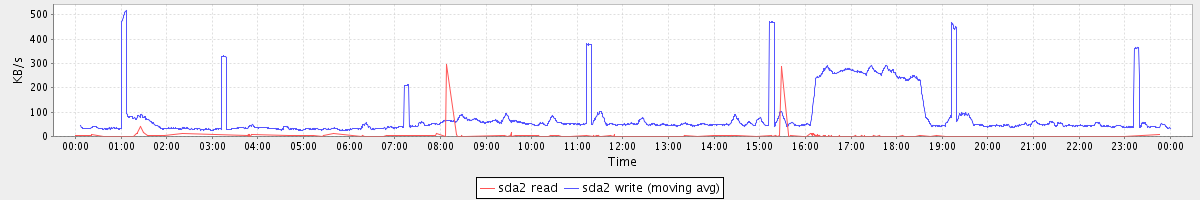 avg(sda read) = 0.42 avg(sda write) = 600.77