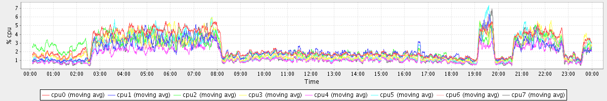 avg(cpu0) = 7.10 avg(cpu1) = 0.29 avg(cpu2) = 0.37 avg(cpu3) = 0.25 avg(cpu4) = 0.18 avg(cpu5) = 0.22 avg(cpu6) = 0.28 avg(cpu7) = 0.21