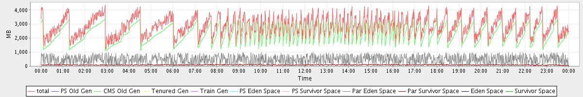 avg(total) = 2858.94 avg(PS Old Gen) = 0.00 avg(CMS Old Gen) = 2287.46 avg(Tenured Gen) = 0.00 avg(Train Gen) = 0.00 avg(PS Eden Space) = 0.00 avg(PS Survivor Space) = 0.00 avg(Par Eden Space) = 483.22 avg(Par Survivor Space) = 88.26 avg(Eden Space) = 0.00 avg(Survivor Space) = 0.00