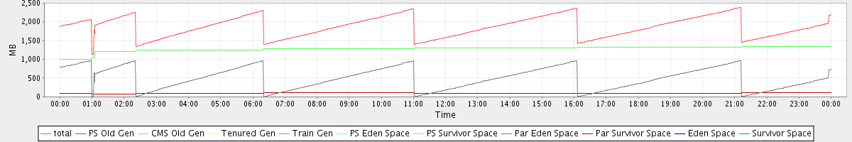 avg(total) = 1864.11 avg(PS Old Gen) = 0.00 avg(CMS Old Gen) = 1279.01 avg(Tenured Gen) = 0.00 avg(Train Gen) = 0.00 avg(PS Eden Space) = 0.00 avg(PS Survivor Space) = 0.00 avg(Par Eden Space) = 488.97 avg(Par Survivor Space) = 96.13 avg(Eden Space) = 0.00 avg(Survivor Space) = 0.00