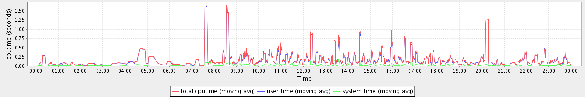 avg(total cputime) = 0.10 avg(user time) = 0.10 avg(system time) = 0.01