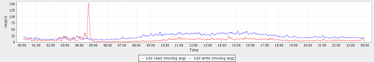 avg(sda1 read) = 19.54 avg(sda1 write) = 46.01