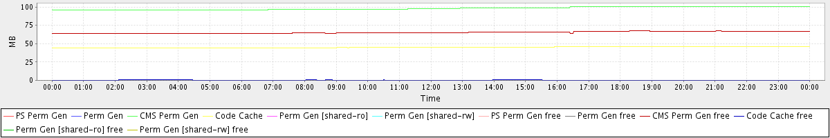 avg(PS Perm Gen) = 0.00 avg(Perm Gen) = 0.00 avg(CMS Perm Gen) = 98.11 avg(Code Cache) = 45.08 avg(Perm Gen [shared-ro]) = 0.00 avg(Perm Gen [shared-rw]) = 0.00 avg(PS Perm Gen free) = 0.00 avg(Perm Gen free) = 0.00 avg(CMS Perm Gen free) = 65.38 avg(Code Cache free) = 0.38 avg(Perm Gen [shared-ro] free) = 0.00 avg(Perm Gen [shared-rw] free) = 0.00