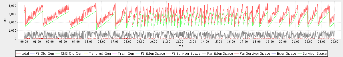 avg(total) = 2909.35 avg(PS Old Gen) = 0.00 avg(CMS Old Gen) = 2338.95 avg(Tenured Gen) = 0.00 avg(Train Gen) = 0.00 avg(PS Eden Space) = 0.00 avg(PS Survivor Space) = 0.00 avg(Par Eden Space) = 481.27 avg(Par Survivor Space) = 89.13 avg(Eden Space) = 0.00 avg(Survivor Space) = 0.00
