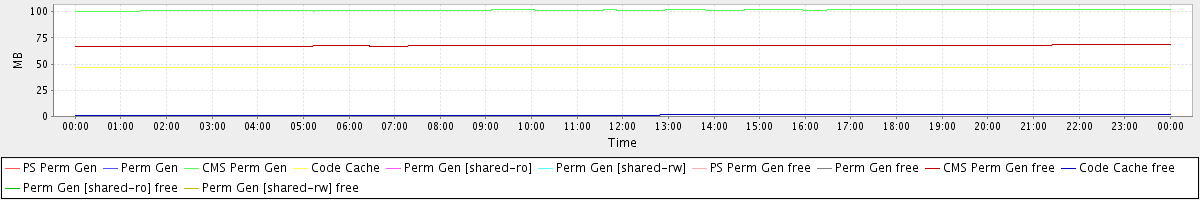 avg(PS Perm Gen) = 0.00 avg(Perm Gen) = 0.00 avg(CMS Perm Gen) = 101.43 avg(Code Cache) = 46.66 avg(Perm Gen [shared-ro]) = 0.00 avg(Perm Gen [shared-rw]) = 0.00 avg(PS Perm Gen free) = 0.00 avg(Perm Gen free) = 0.00 avg(CMS Perm Gen free) = 67.60 avg(Code Cache free) = 1.34 avg(Perm Gen [shared-ro] free) = 0.00 avg(Perm Gen [shared-rw] free) = 0.00
