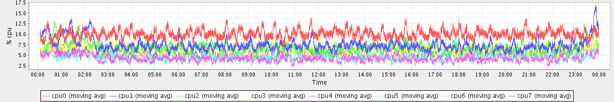avg(cpu0) = 1.13 avg(cpu1) = 1.17 avg(cpu2) = 1.09 avg(cpu3) = 0.74 avg(cpu4) = 0.50 avg(cpu5) = 0.47 avg(cpu6) = 0.62 avg(cpu7) = 0.40
