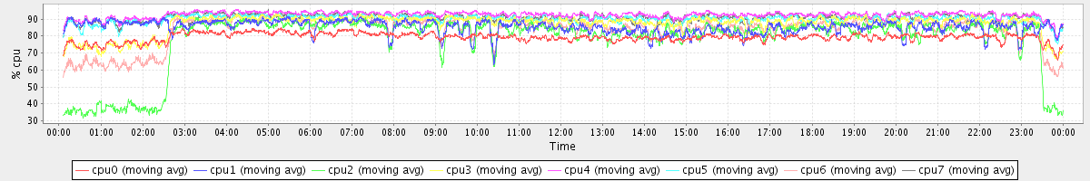 avg(cpu0) = 79.27 avg(cpu1) = 85.43 avg(cpu2) = 77.84 avg(cpu3) = 87.13 avg(cpu4) = 92.44 avg(cpu5) = 90.08 avg(cpu6) = 83.56 avg(cpu7) = 90.89