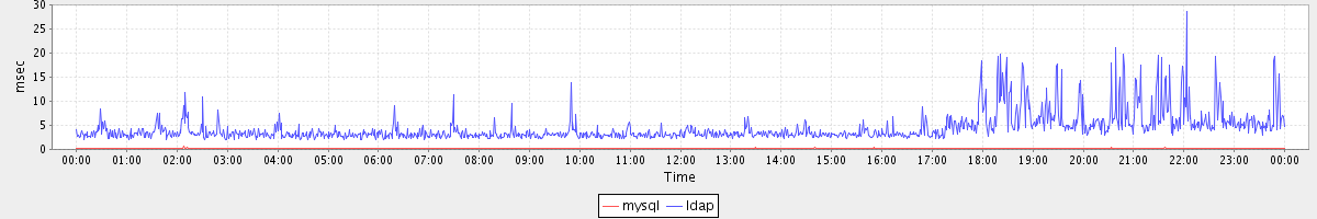 avg(mysql) = 0.17 avg(ldap) = 4.42