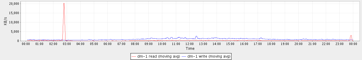 avg(dm-1 read) = 24.37 avg(dm-1 write) = 154.57