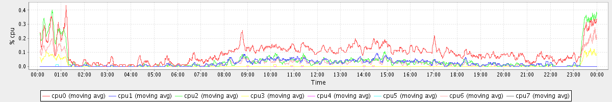 avg(cpu0) = 1.08 avg(cpu1) = 0.22 avg(cpu2) = 0.22 avg(cpu3) = 0.14 avg(cpu4) = 0.10 avg(cpu5) = 0.12 avg(cpu6) = 0.17 avg(cpu7) = 0.13