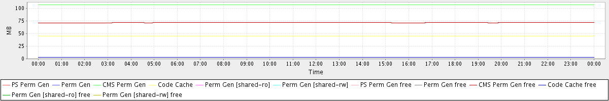 avg(PS Perm Gen) = 0.00 avg(Perm Gen) = 0.00 avg(CMS Perm Gen) = 107.28 avg(Code Cache) = 44.64 avg(Perm Gen [shared-ro]) = 0.00 avg(Perm Gen [shared-rw]) = 0.00 avg(PS Perm Gen free) = 0.00 avg(Perm Gen free) = 0.00 avg(CMS Perm Gen free) = 71.69 avg(Code Cache free) = 3.36 avg(Perm Gen [shared-ro] free) = 0.00 avg(Perm Gen [shared-rw] free) = 0.00