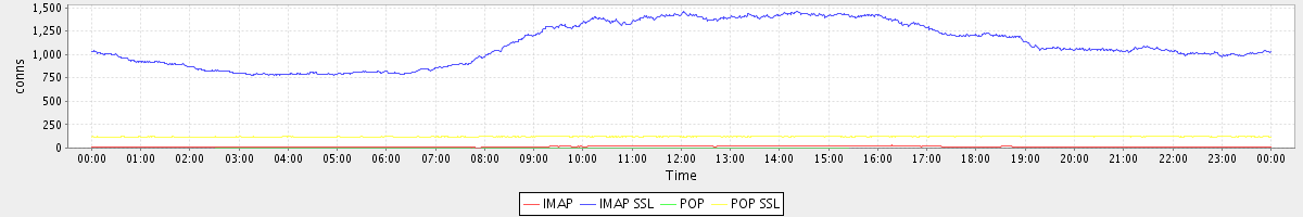 avg(IMAP) = 12.60 avg(IMAP SSL) = 1107.09 avg(POP) = 0.00 avg(POP SSL) = 122.33