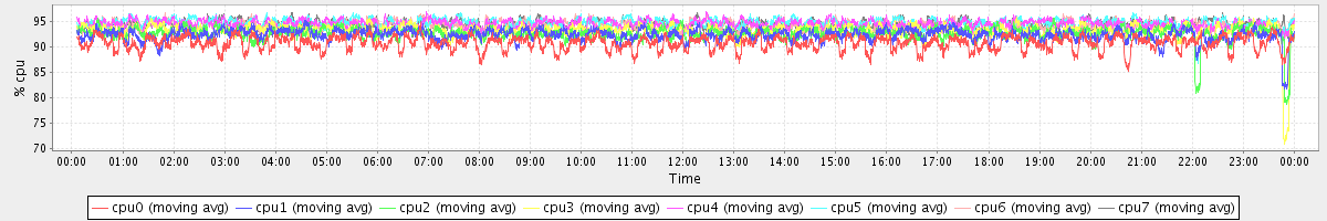 avg(cpu0) = 90.66 avg(cpu1) = 92.28 avg(cpu2) = 92.52 avg(cpu3) = 93.08 avg(cpu4) = 94.47 avg(cpu5) = 94.66 avg(cpu6) = 94.16 avg(cpu7) = 94.32