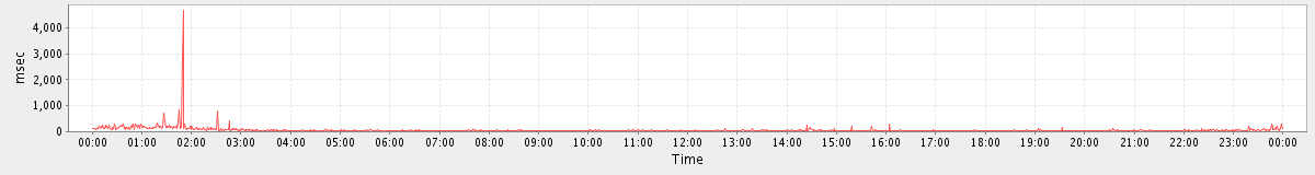avg(FolderActionRequest.sync) = 2126.00 avg(SendMsgRequest) = 292.12 avg(GetContactsRequest) = 3439.24 avg(BackupQueryRequest) = 649.50 avg(CheckRecurConflictsRequest) = 401.75 avg(SendInviteReplyRequest) = 303.50 avg(AutoCompleteRequest) = 362.66 avg(FolderActionRequest.empty) = 2227.72 avg(BackupRequest) = 18363.00 avg(GetQuotaUsageRequest) = 2126.00