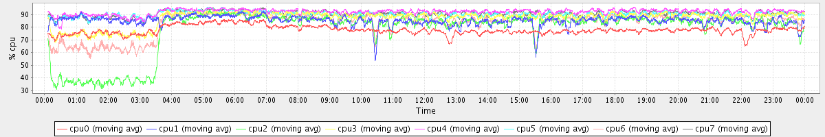 avg(cpu0) = 77.81 avg(cpu1) = 85.14 avg(cpu2) = 77.99 avg(cpu3) = 87.19 avg(cpu4) = 92.22 avg(cpu5) = 90.18 avg(cpu6) = 83.42 avg(cpu7) = 90.56