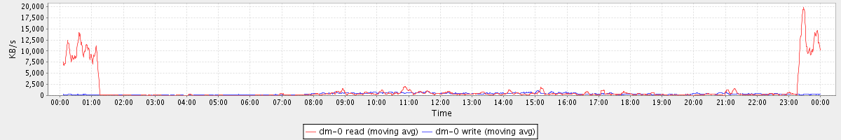 avg(dm-1 read) = 413.40 avg(dm-1 write) = 1143.08