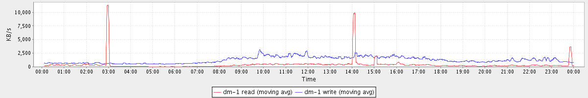 avg(dm-1 read) = 35.46 avg(dm-1 write) = 223.70