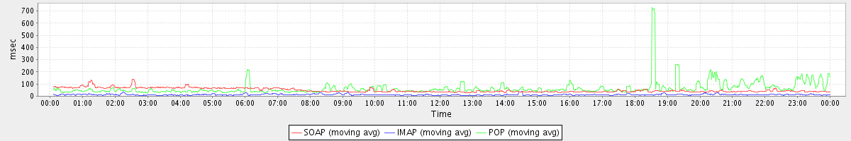 avg(IMAP) = 23.82 avg(IMAP SSL) = 1425.08 avg(POP) = 0.02 avg(POP SSL) = 99.93