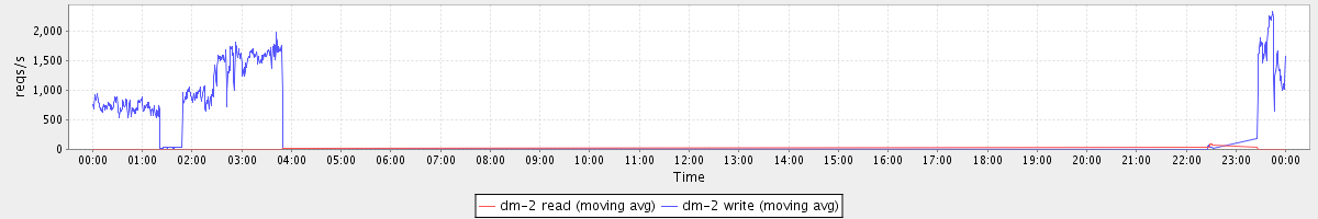 avg(dm-2 read) = 0.37 avg(dm-2 write) = 191.78