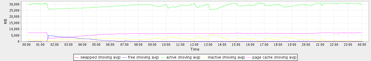 avg(swapped) = 0.25 avg(free) = 673.78 avg(active) = 28880.29 avg(inactive) = 1925.08 avg(page cache) = 6186.07