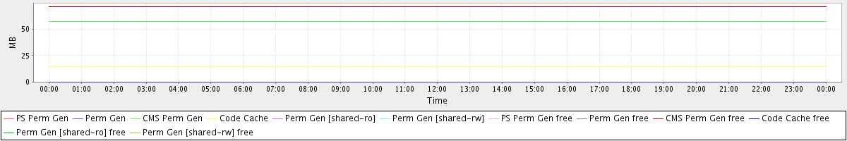avg(PS Perm Gen) = 0.00 avg(Perm Gen) = 0.00 avg(CMS Perm Gen) = 56.86 avg(Code Cache) = 14.46 avg(Perm Gen [shared-ro]) = 0.00 avg(Perm Gen [shared-rw]) = 0.00 avg(PS Perm Gen free) = 0.00 avg(Perm Gen free) = 0.00 avg(CMS Perm Gen free) = 71.14 avg(Code Cache free) = 0.23 avg(Perm Gen [shared-ro] free) = 0.00 avg(Perm Gen [shared-rw] free) = 0.00
